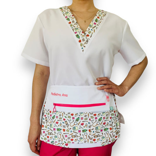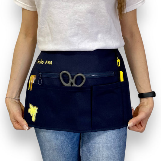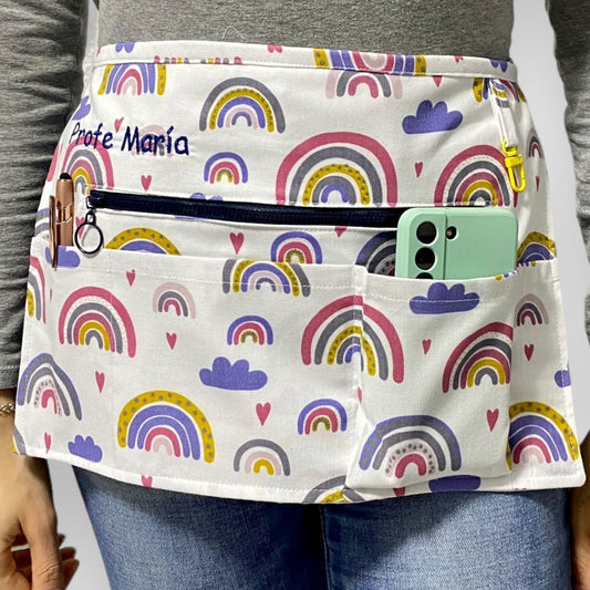 Son muchas las herramientas que tienes que llevar encima en el cole y el hospital, ¡y a veces es imposible cargar con todas! Bolis, tijeras, móvil, libreta… Gracias a nuestros mandiles personalizados, ¡podrás tener todo al alcance de tu mano!