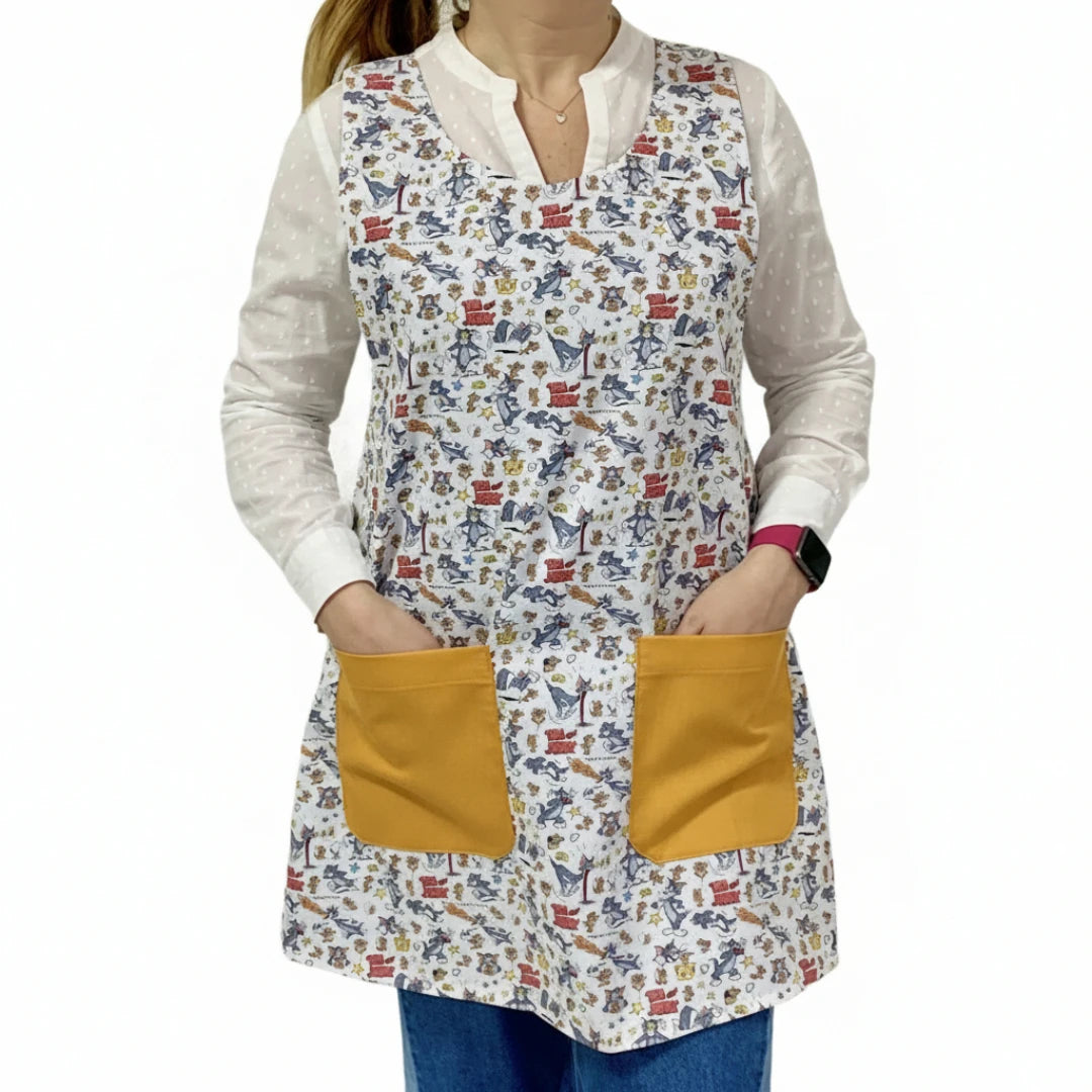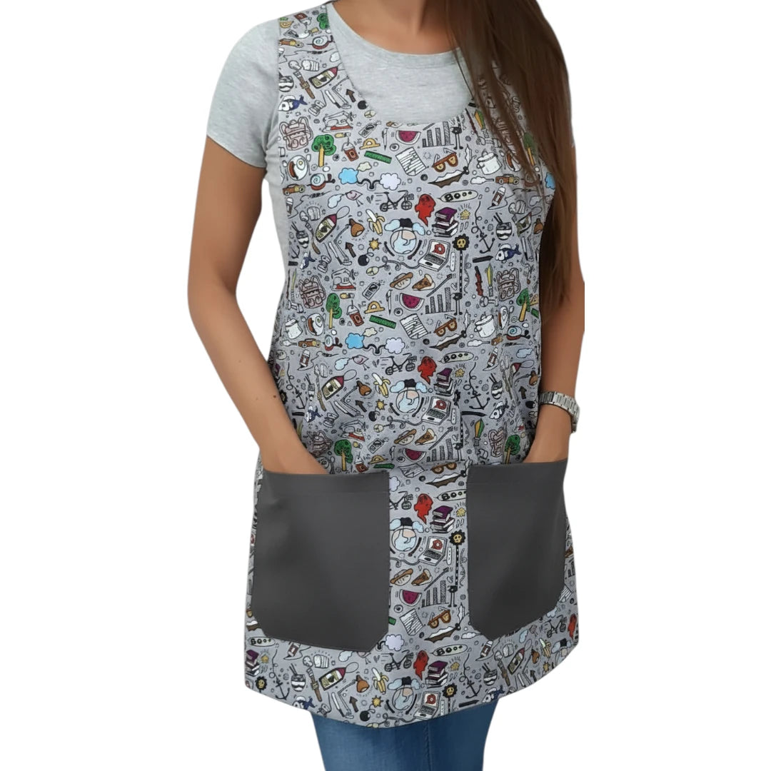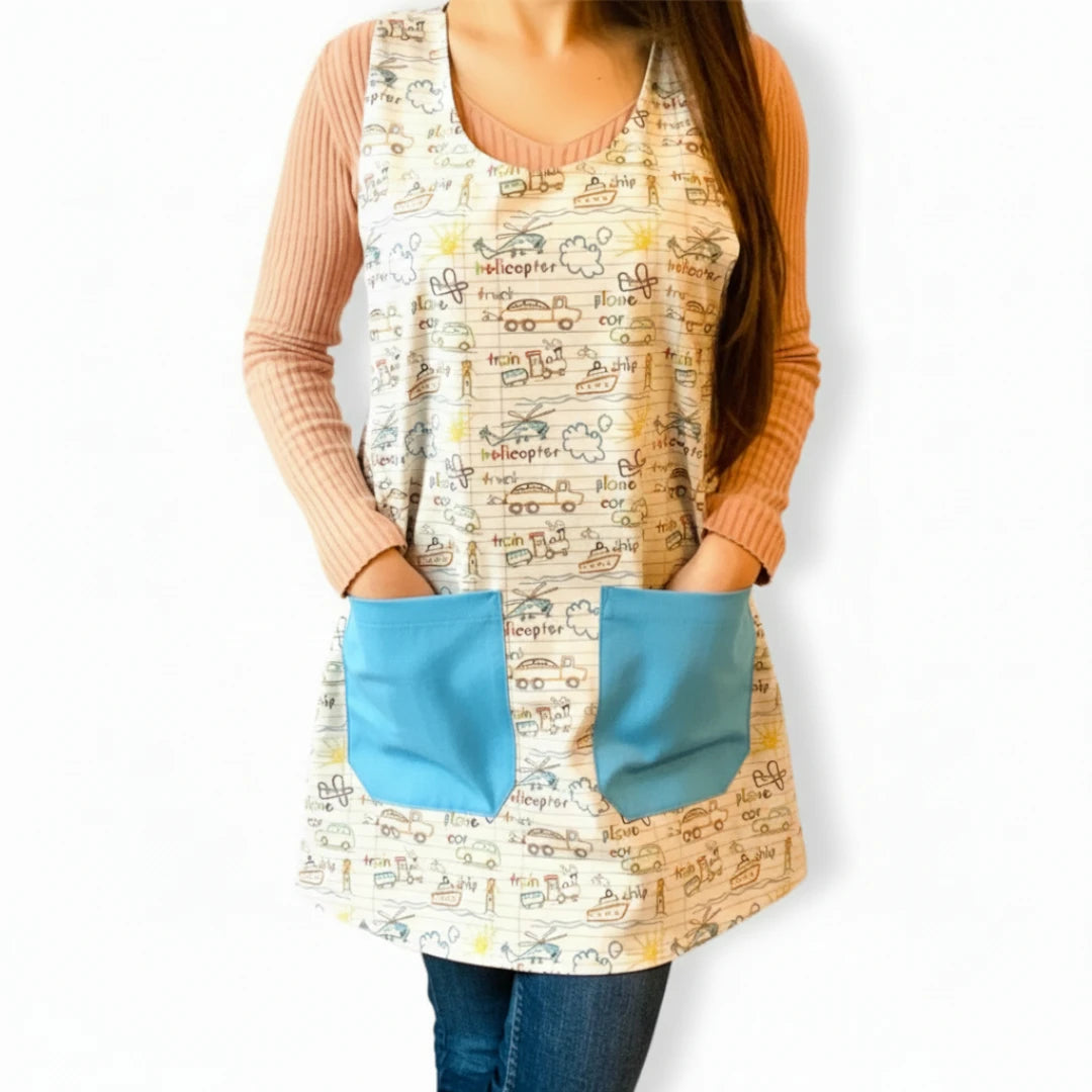 Inoltre, le tasche sono totalmente personalizzabili! Seleziona la stampa che ti piace di più e scegli il colore delle tasche che meglio si abbina al tuo stile. Fai del tuo grembiule da maestra un capo esclusivo che rifletta la tua essenza!