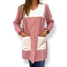Esta bata no puede ser más amorosa. Con mangas y detalles en tela de corazones rosas, y botones a juego también en forma de corazón. Además, es práctica a más no poder: tejido antiarrugas y antimanchas para sobrevivir al ritmo del aula sin perder el estilo.
