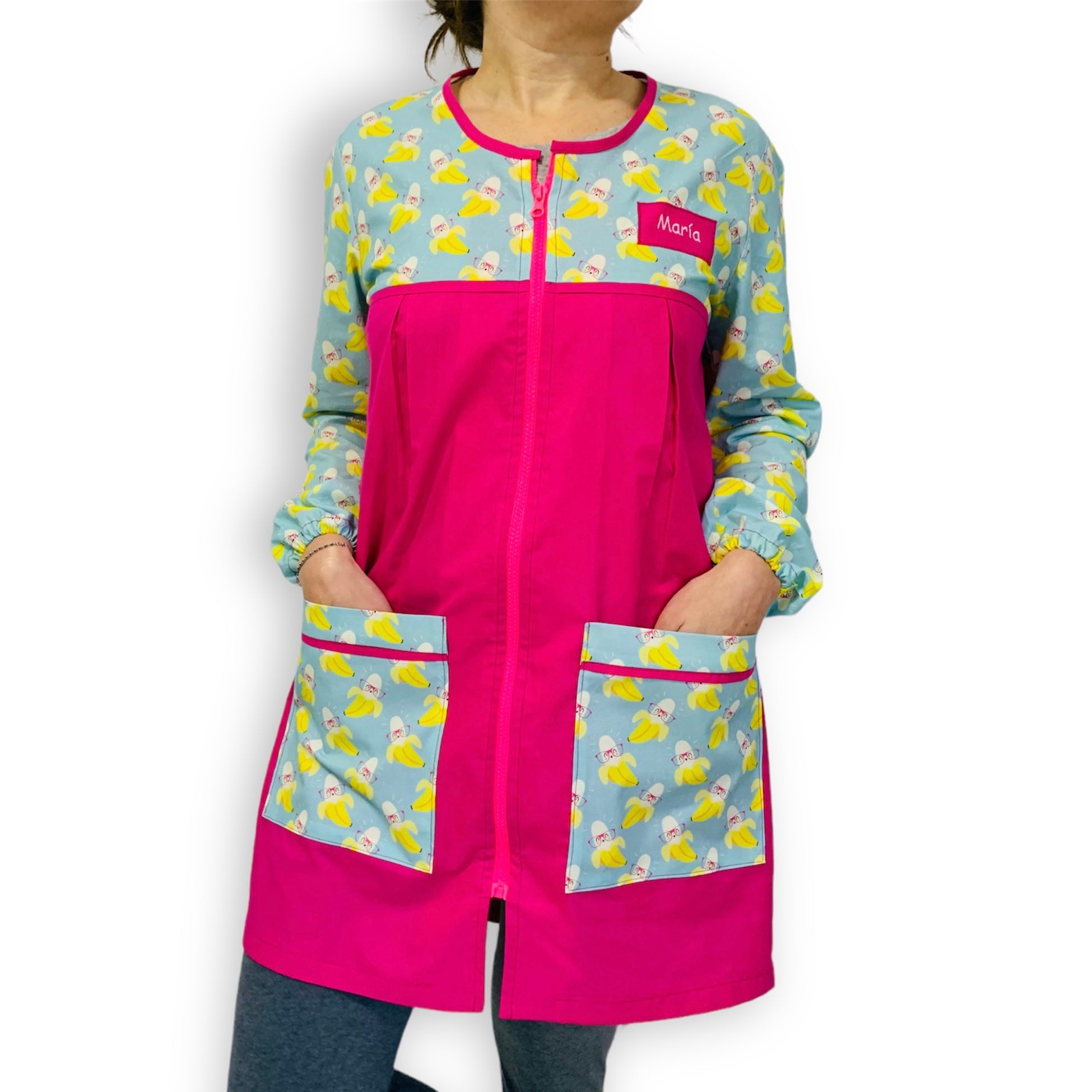 En SuYa Shop confeccionamos tu bata con mangas cuando realizas tu pedido ya que cada profe es única y su bata también.