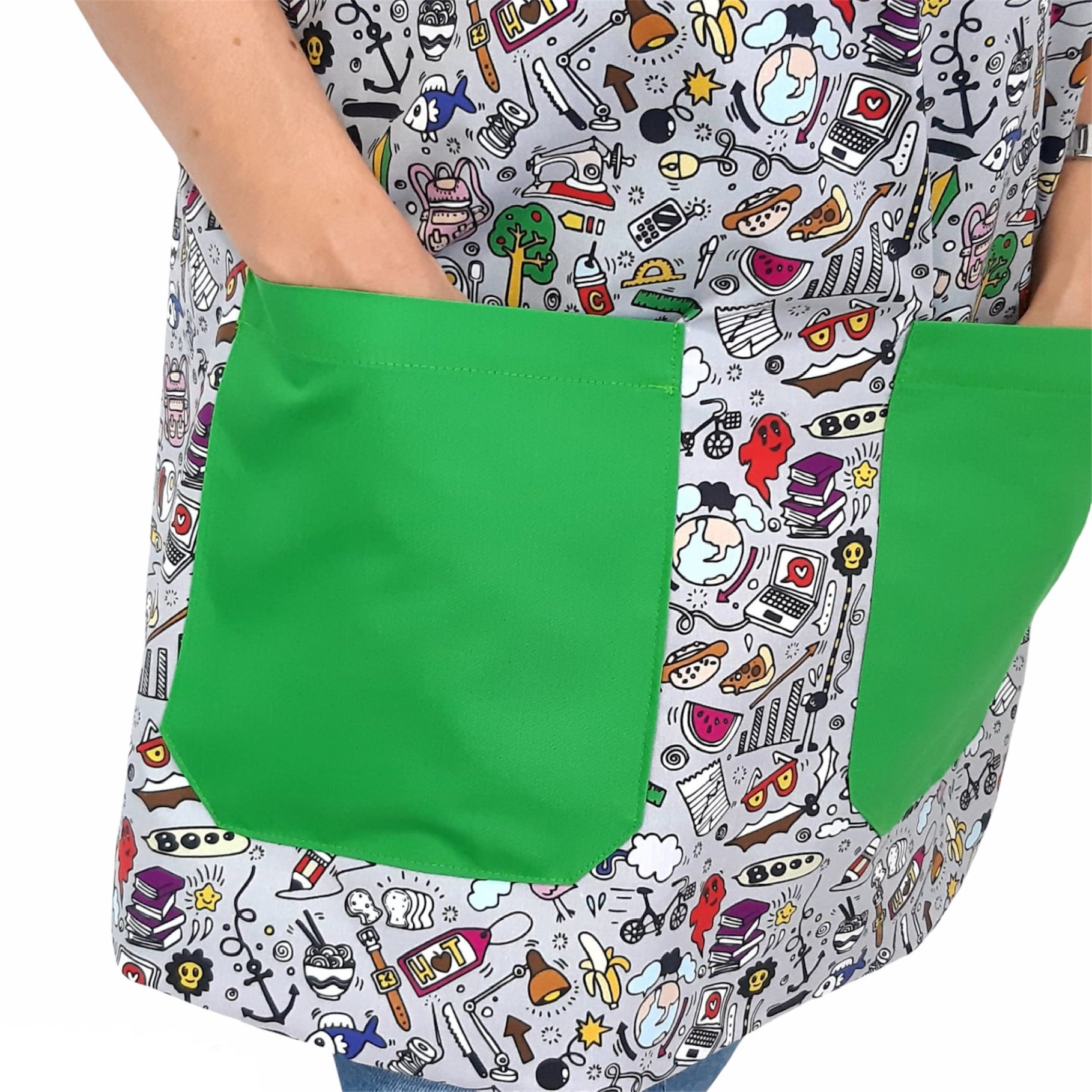 Crea tu bata estampada eligiendo el color de bolsillos que más te guste, tu talla y para finalizar puedes darle un toque muy personal añadiendo un bordado con tu nombre, iniciales o una frase que te motive.