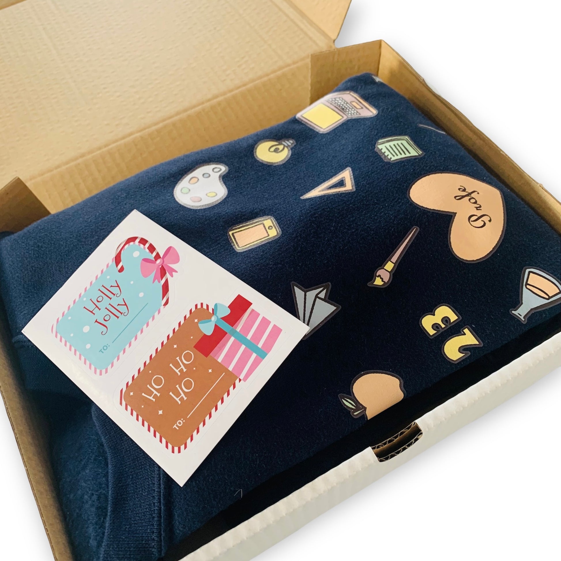 Tarjeta navideña con adhesivo ideal para personalizar tus regalos. Incluye un espacio especial para escribir el nombre de la persona destinataria, haciendo cada obsequio más especial y único.