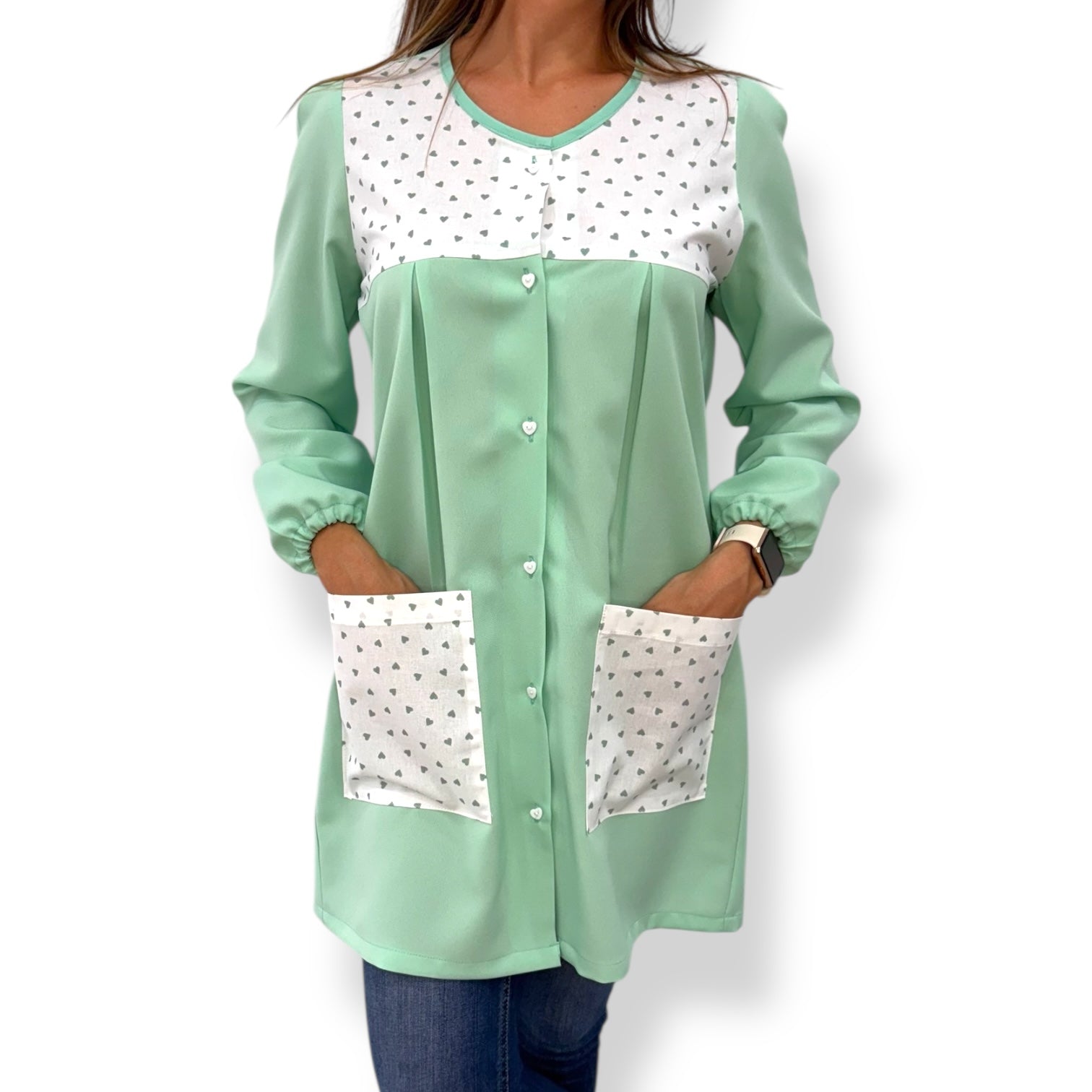 Se és friolera ou das que se mancham facilmente durante as atividades com os peques, as nossas batas para professoras com mangas são ideais para ti. Práticas e versáteis!
