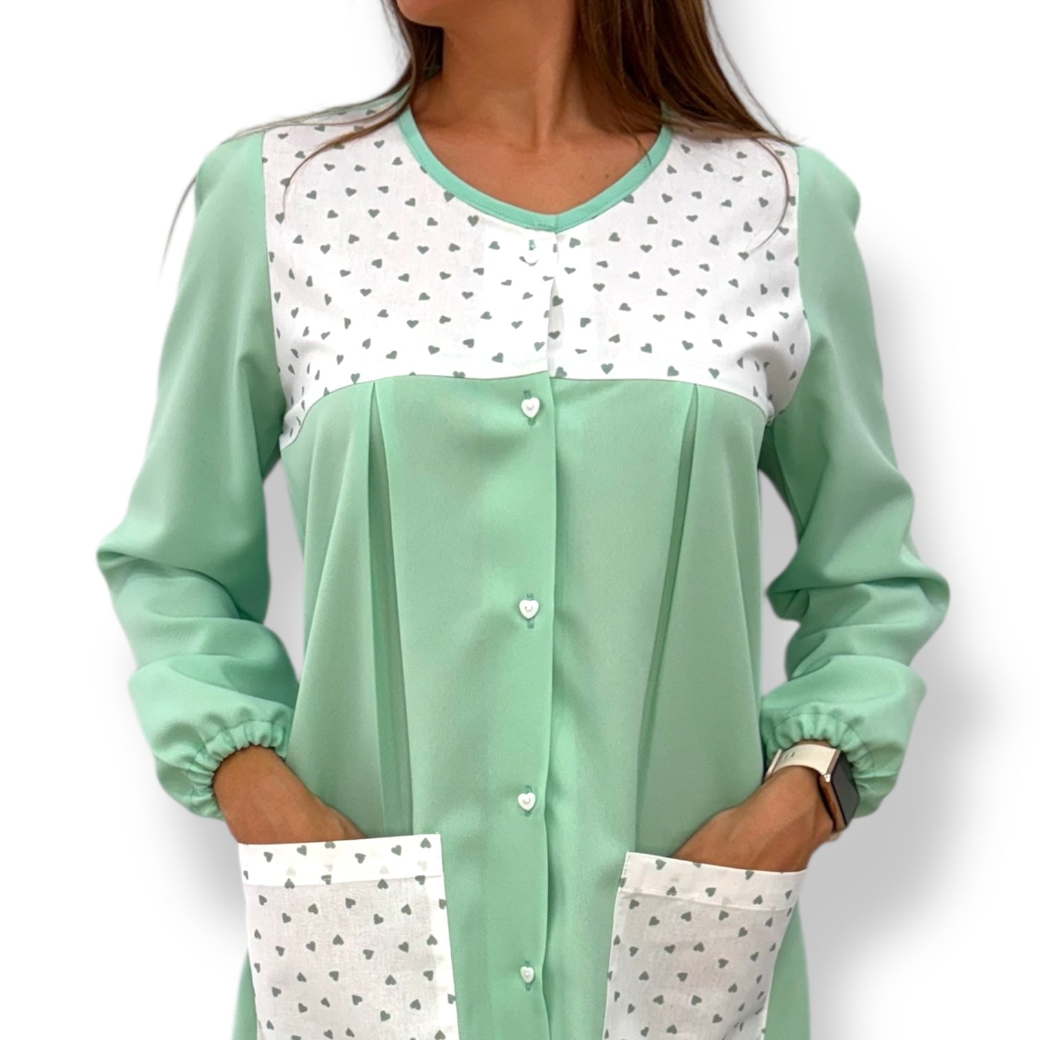 Para as professoras que procuram maior cobertura e proteção, as batas para professoras com mangas são a escolha perfeita. As mangas são confortáveis e ajustáveis, oferecendo a funcionalidade necessária para o trabalho diário. Podes escolher entre zíper ou botões.